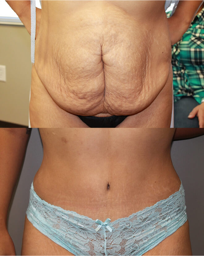 It can reduce or eliminate stretch marks located on the lower abdomen, especially those on skin that’s removed during surgery. Marks outside that area may remain but could appear less noticeable with tightening.
